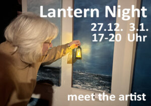 Die Gäste meiner Lantern Nights können meine Bilder einmal ganz anders erleben. Statt in perfekter Ausleuchtung müssen sie sich die Kunstwerke mit einer kleinen Laterne selbst erarbeiten, sie gehen quasi auf Tuchfühlung mit meinen Werken. Es gibt es kein Bild ohne das Meer. Mit den reduzierten Bilder vom Segeln, Sea- und Skyscapes sowie den Küstenbildern habe ich meine eigene ganzheitliche Wahrnehmung von Wasser, Meer, Wind, Wolken und Segelschiffen zeitlos modern interpretiert und erkläre sie gerne selbst. „Meet the Artist“ ist für mich eine Passion. In dieser ganz besonderen Atmosphäre entwickelt sich sehr schnell auch zwischen den Besuchern eine hochkommunikative Gemeinschaft. Herzlich willkommen. Eure Frauke Klatt